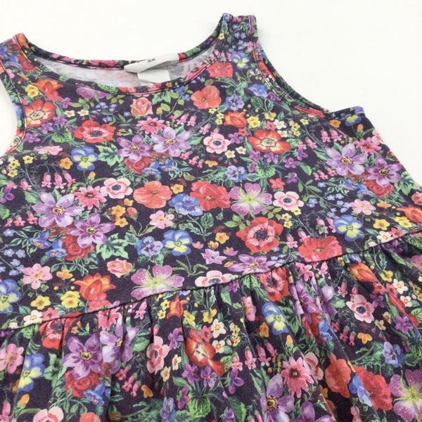 Colourful Flowers Dark Navy Lightweight Jersey Dress - Girls 4-6 Years