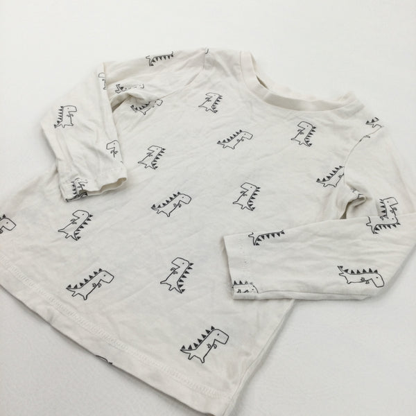 Dinosaurs Cream Long Sleeve Top - Boys 3-4 Years