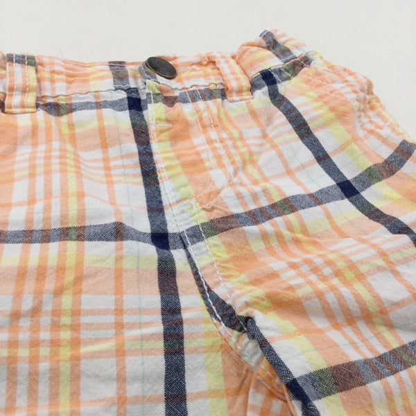 Orange, Navy & White Checked Lightweight Cotton Cargo Shorts - Boys 9-12 Months