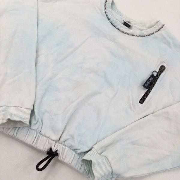 Blue & White Tie Dye Sweatshirt - Girls 9-10 Years